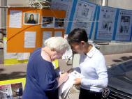 过路的人们听到呼吁、看到真象图片都会驻足停留,有的主动签名、有的认真的了解详细情况、有的看图片……了解真象的人们都会说:“继续努力,我们支持你们!”“共产党专制独裁才会干出这样残害人民的事情。”“这样残酷的事情发生在中国太不可思议了,和中国的宣传不一样。我支持你们!”“要停止迫害,中国才有希望。”……