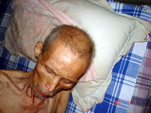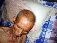 大约6月20日左右,他们把我送到了郑州监狱,当监狱里的医院医生检查时,我体重只有25公斤,还有大褥疮,说人快不行了,拒收。监狱警察让狱中的犯人把我抬到监狱院子里的草坪上。等了看守所的人很长时间,还没有回来,就又把我从草坪拖到医院里。医生抱着试试看的心态打吊针,看我尿出点尿,大夫说看来还有救,他们一方面继续给我打吊针,一方面抱怨孟州看守所的警察不应该为了推卸责任把人放在这就跑了,并扬言跟他们打官司。