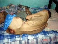 19日左右,号长发现我想动,就又要铐紧我,结果发现我肚子上有硬块。他们叫来看守所的医生,医生从离我6米多的高处看着我,说我的脚全肿了,说我快不行了。于是他们赶快把鼻管拔了,把手脚的铐取了。这时发现我的尾椎上有一个大脓疮,鼓的很高。