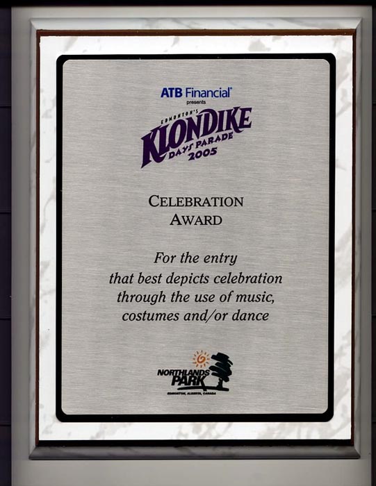 法轮功学员的游行团队由于其杰出花车设计和整体表现,获得了游行组委会颁发的最佳音乐、服装和/或舞蹈设计的节日庆祝奖。