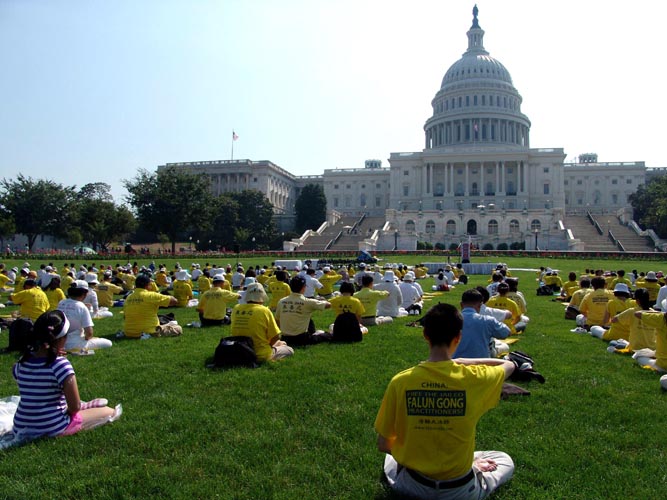 在集会的会场上,看到在炼功人群中有两位出家人装束的法轮功修炼者,她们是来自台湾的释证通和释如玄。释证通表示,目前台湾至少有十位出家人成为法轮功学员。她说,现在台湾政府及老百姓越来越了解法轮功真象。她因为看到中共诬蔑法轮功,又看到世人被谎言所蒙蔽;所以决定要走出来支持这次的反迫害活动。而从小就出家的释如玄说,其实佛教藏经中讲到了会有大法洪传,读通经书的人自然就会走进大法来。