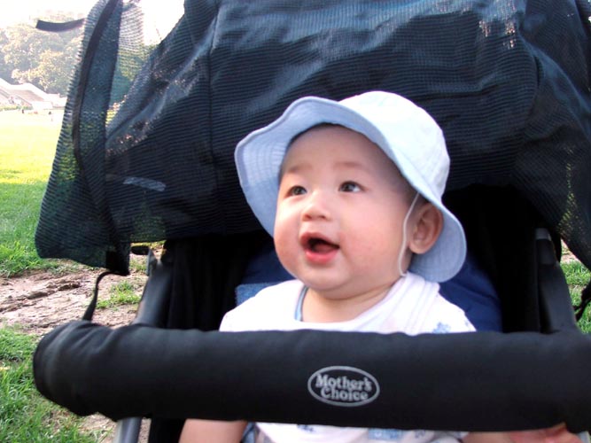 今年最小的大法弟子是来自新西兰的蔡昱,今年才七个月大的他,一大早就随着妈妈来到国会山庄,妈妈忙着发资料,他就乖乖的躺在娃娃车里不哭不闹,每个人看了都说他真乖。更厉害的是,游行的时候,正值中午,烈日当空,他的娃娃车里外还堆满了叔叔阿姨的好多包包,他闷在里面照样乖乖的,跟着妈妈到终点。