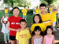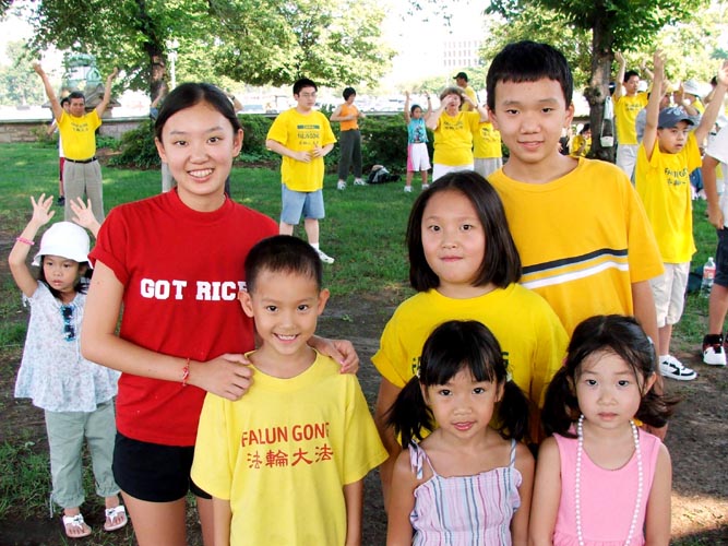 来自亚特兰大的六位小学员:李轶普、李西隆、王纯可、王纯真、姚家力和雷梦也在炼功行列之中。大姐姐李轶普表示,他们参加华府“7•20”的集会有好几年了,每年都看到有新的学员加入。她觉得能做大法弟子很骄傲。