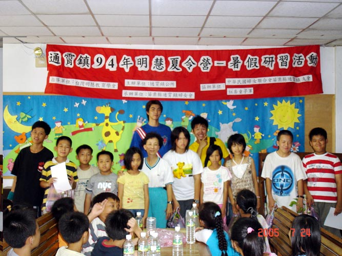 活动由通霄镇长巫恒昭揭开序幕,他告诉小朋友只要带着一颗愉悦的心来参与这场知性与感性的、科学与人文的、温馨又有趣的活动,会让2005年暑假回味无穷。两天的课程安排很丰富也很紧凑,透过团康、教功、动画欣赏、纸艺DIY、舞蹈、佳句朗读、营火晚会、带动唱及闯关等活动,孩子们专注认真学习外,也体会了彼此互相合作的重要性。