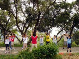 第二天早上六点起床,小朋友依然精神抖擞,全体一起炼功。对绝大多数的小朋友而言,这是他们第一次起床炼法轮功呢!上午十点至十一点,纸艺DIY时间─摺纸藤花器。利用资源回收的铝罐,及家中随手可得广告纸、杂志纸张的再利用,做成的花器,可放置黄金葛,不仅可美化绿化环境外,馈赠亲朋好友更是两相宜。过程中也教导小朋友爱惜大地资源、惜福的观念。
