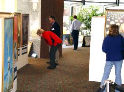 一个参观画展的人用天目看到神佛的光芒从画上撒向世间。另一个人在接到传单的刹那就有一种强烈的愿望要来看画展,他请了一天假,结果全天都待在那里。还有一位年轻女士是到附近的公园游玩,被一种强大的力量引导到画展的,当时画展还在布置中,她成了第一个参观画展的人。她说:“这些画太让我震惊了,尤其是一想到这些酷刑还在发生时,觉得实在太可怕了。”接着她又说:“不过我注意到了这些法轮功学员不同寻常,虽然承受这样的酷刑,但他们的表情却是那么平静、善良,同时又是那么坚定。”当听完学员讲解真象后,她马上问怎么能做到象法轮功学员那样?学员马上将法轮大法网址告诉她,让她上网看书,并告诉她炼功点的地址。参观画展的人都很高兴倾听学员谈论有关法轮功的修炼故事。