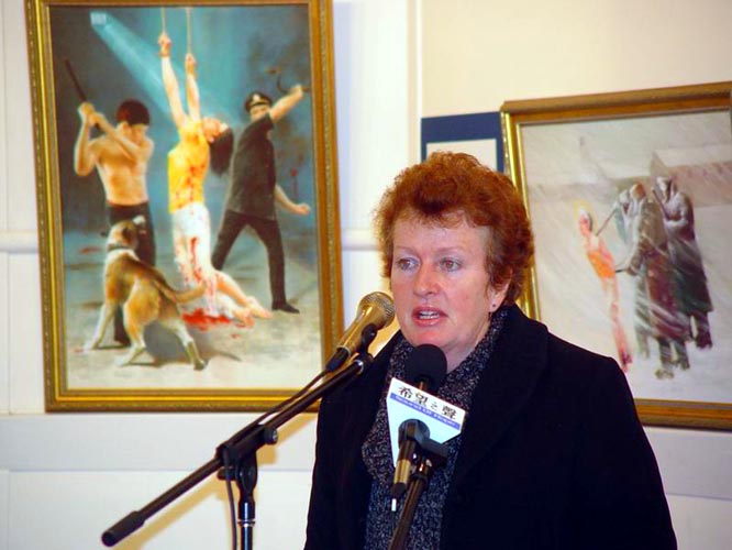 在第一天的开幕典礼上,大赦国际的代表吉尔帕翠克(Robyn Kilpatrick)和曾在中国因修炼法轮功受到严重迫害的画家章翠英女士作了发言,吉尔帕翠克说:这些画将法轮功学员在中国遭受的迫害生动的表现出来了,看了令人震撼,尤其是‘为什么’这幅画,小男孩那双困惑的眼睛,让我们这些成人也得好好问问自己:‘为什么?’”“为什么这样残酷的事还在发生?”画家章翠英女士对绘画作了高度的评价,她认为有些画无论从绘画技巧还是内涵上都超过了卢浮宫的绘画,是真正的正统的人类的艺术。