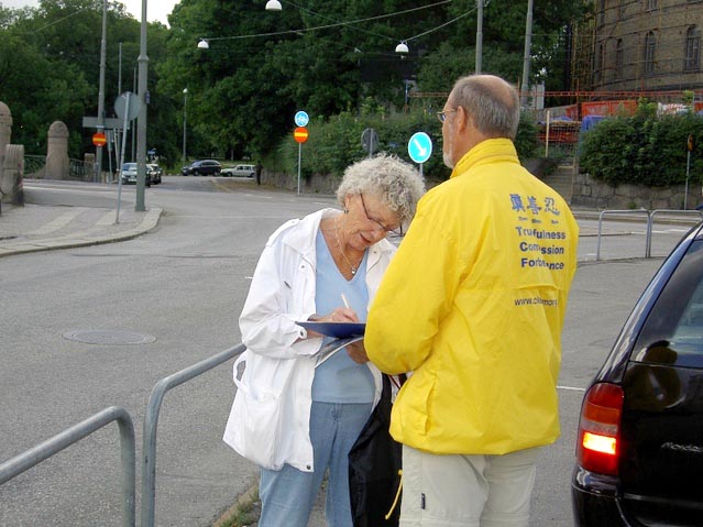 法轮功学员于每个工作日的上班时间在中领馆外进行和平抗议,呼吁制止这场迫害。7月20日这一天,更多的学员来到此处参加和平抗议,呼吁民众关注发生在中国的人权践踏。学员们还想要告诉中领馆的工作人员要为自己的行为负责,而其行为则应对得起自己的良心。