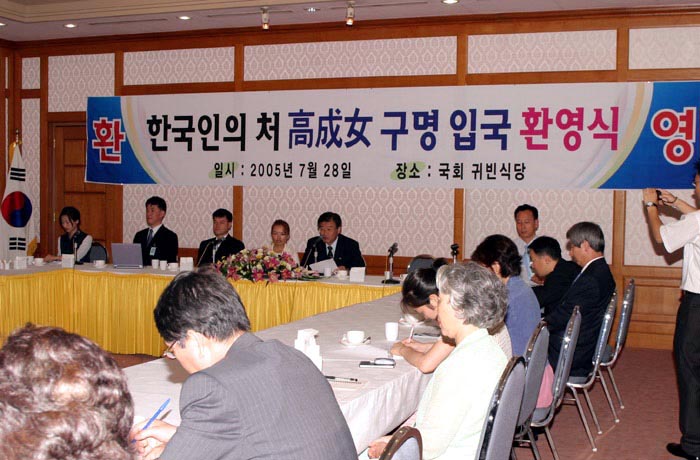 当天,高成女及其丈夫郭炳浩精神焕发,他们叙述了来韩后的生活情况,并对所有曾给予他们帮助的人们表达谢意。
