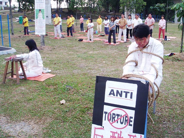 【明慧网2005年7月4日】近日来,马来西亚法轮功学员在几个不同的公园炼功点举行了反展活动,揭露中共对法轮功的残酷。2005年7月3日(星期日)早上,反酷刑展在八打灵(Petaling Jaya)的Taman Sri Aman公园的炼功点举办。虽然当天公园里晨运人士不是非常多,但是,经过活动地点的人士大部份都很乐意接受资料及聆听学员们讲述发生在中国的迫害真象,尤其当提到最近发生的中国法轮功学员高蓉蓉被残酷迫害致死的骇人听闻事件,人们都不禁为之动容,过后都以实际行动签名支持反迫害。