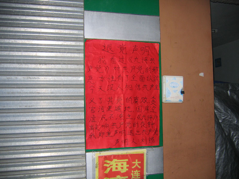 吉林市城区张贴了许多退!党!声明及不干胶 |