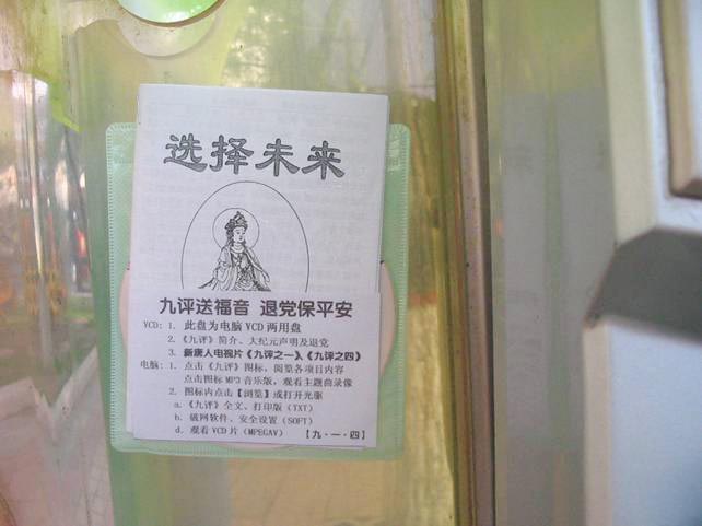 *》书籍、光盘、小册子、传单,张贴的宣传画,用U盘、软盘拷贝。和全中国一样,太原的许多市民已知道《