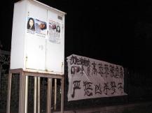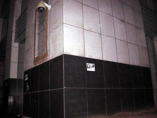 ![]() 贴在审判法庭门前的不干胶 | ![]() 贴在法院周围的墙壁上的不干胶 |