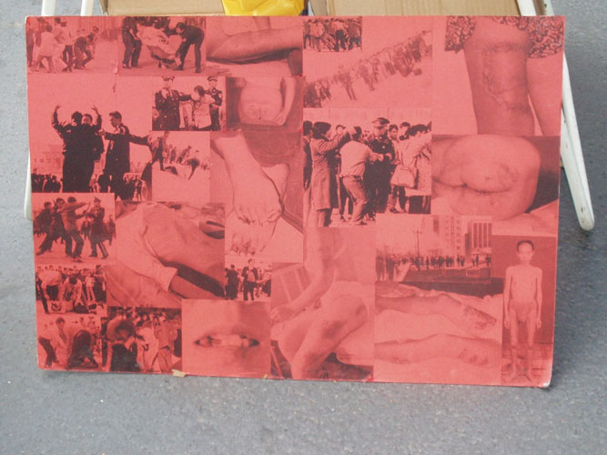 ![]() 揭露迫害真象的展板 | ![]() “法轮大法”“真善忍”横幅 |