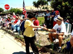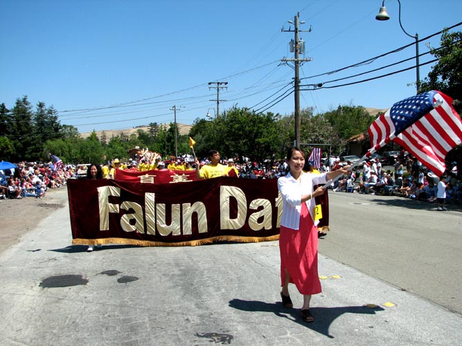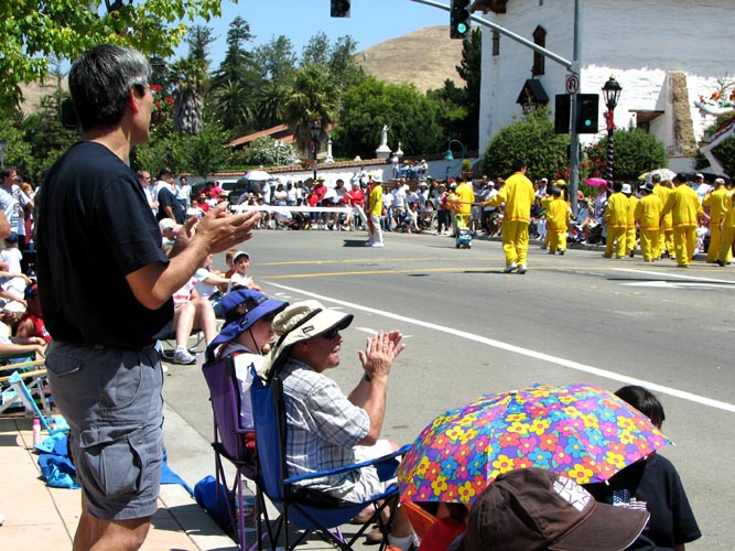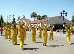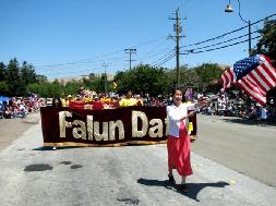 还有一位观众一直微笑着向游行队伍挥手,她问学员现在游行的队伍叫什么。当她听说是法轮功的队伍时,她表示已在报纸上看到法轮功的消息,她知道中共在中国不让人们修炼这个功法。学员跟她说,在中国人们没有信仰自由,许多人因为炼功已经被迫害致死。现在在世界上人们都可以自由的炼功。