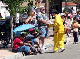 许多来自中国的居民,看到法轮功的游行队伍中还有外国人,连声惊呼道:“快看,还有老美。”学员了解到他们是从中国大陆来的,就问他们有没有听说过法轮功,他们说:“听说过,法轮功挺不错的。”
