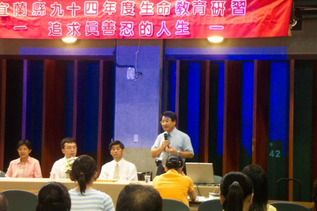本身也学炼法轮功的宜兰慧灯中学洪校长、国立宜商刘老师与国立罗工李老师共同主持此次活动,并由许多热心的当地学员在场协助教功。近年来,台湾许多县市都在寒暑假举办“法轮大法教师研习营”活动,由各行各业学有专精的法轮功学员,向中小学的教职员工介绍法轮功。这项活动使很多教育工作者将“真、善、忍”汇入其日常教学中,因而广受教育局、校长、教师们欢迎,并授予研习学分。