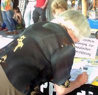 不少过往的游客读了真象展板,主动签名呼吁停止