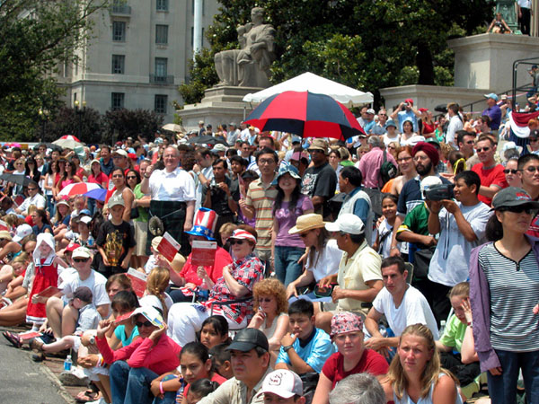 当天天气晴朗,温度适宜,估计有多达五十万人参加了包括独立日游行在内的多项庆祝活动。