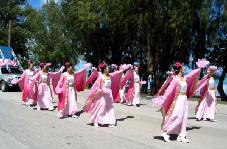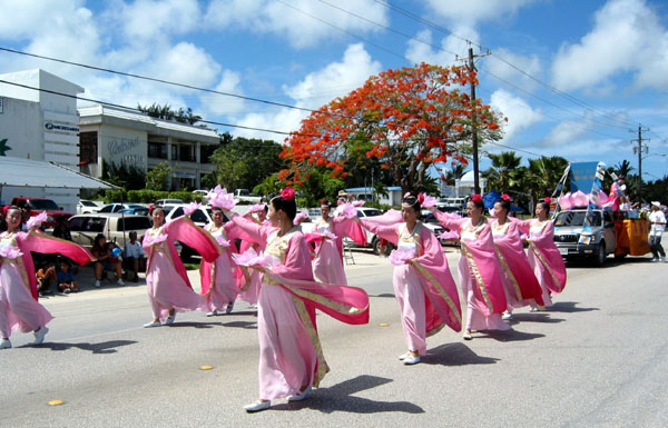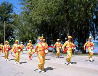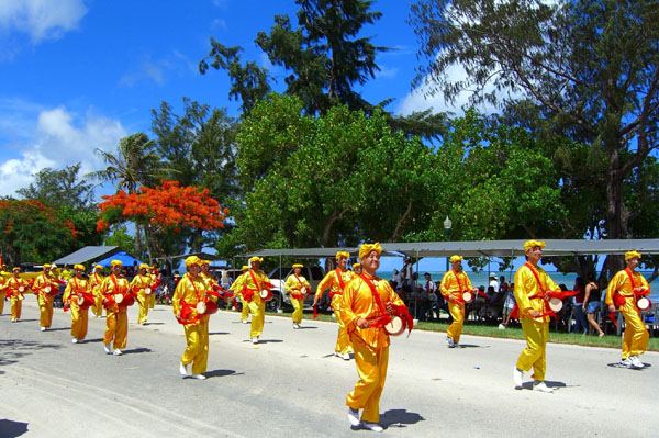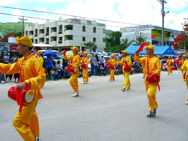 今年塞班岛法轮功学员的游行队伍主要由腰鼓队以及唐装舞蹈队组成,博得了观众的阵阵掌声,再次让塞班岛的民众感受到了法轮大法的美好。