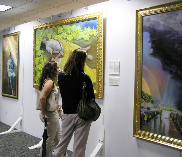 “真善忍”国际美展以其独特的方式,震撼人心的力量告诉着人们法轮功真象,诉说着一个个惊天动地,感人至深的真实故事。
