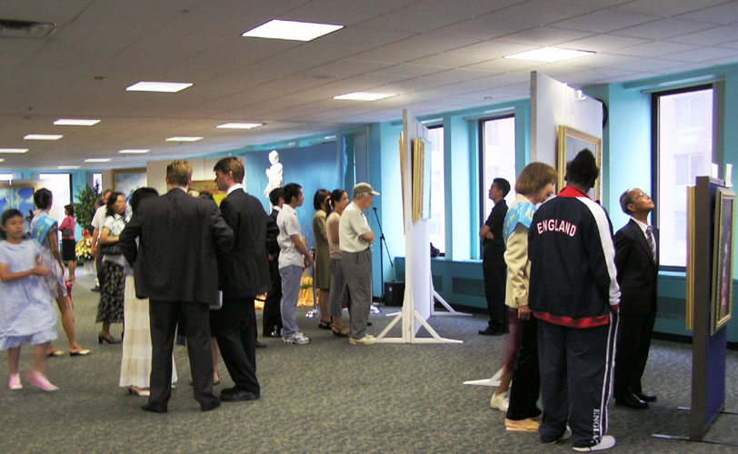“真善忍”国际画展在纽约曼哈顿联邦大楼举行为期3天的展览,画展由美东法轮大法佛学会和法轮大法弟子艺术中心联合举办。联邦大楼是一个有着8000员工的联邦政府机构,前面是纽约市市政府,后面是纽约市的各大法院,可以说位踞要地。