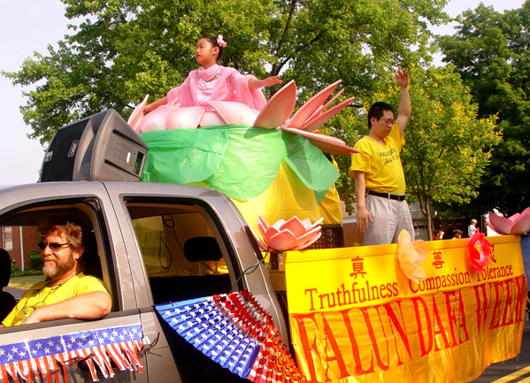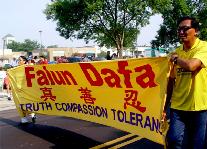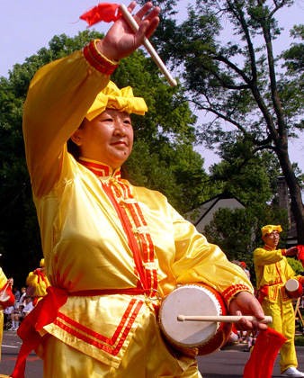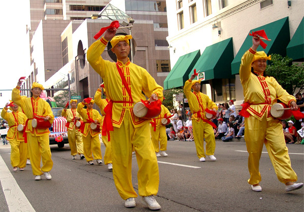 【明慧网2005年7月8日】美国的“独立日”游行是美国人民宣扬民主自由精神和多彩文化的大好时机,也是法轮功学员展示法轮大法美好的舞台。在俄亥俄州的首府哥伦布市,数年来法轮功一直是参与这一活动的唯一以亚裔为主的团体。7月1日下午和7月4日上午,法轮功学员分别参加了哥伦布市和阿普阿林顿市(Upper Arlington)的“独立日”庆祝游行。与往年不同,今年法轮功学员带给俄亥俄州人民的是中国腰鼓表演,而不是仙女舞蹈。
