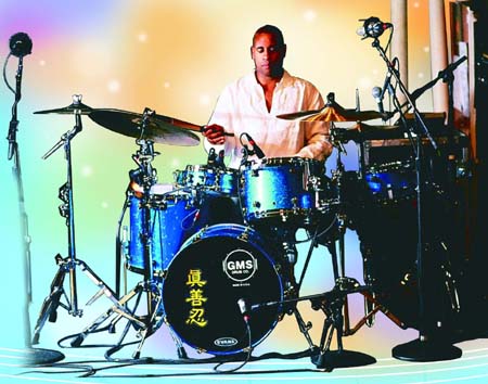 斯特林笑着对我们说:“七年了,我戒了烟,不再吸毒、酗酒,而且身体非常健康。但这不是全部,法轮功不仅带给我身体上的健康,更重要的是精神上的改变,我现在是一个更快乐的人。我非常认同‘真、善、忍’。”在斯特林演出的鼓上,赫然写着“真、善、忍”三个中文字,他希望观众都能看到。