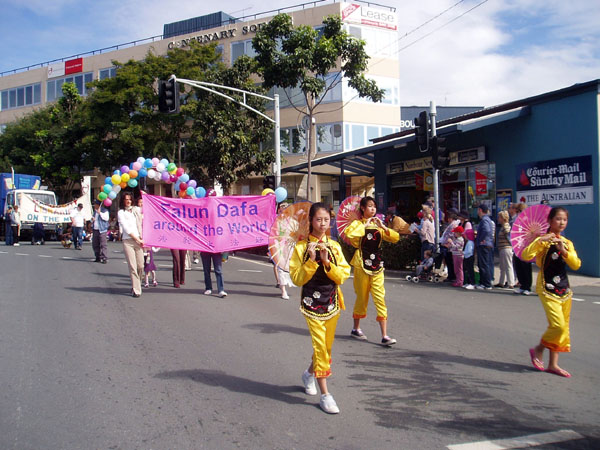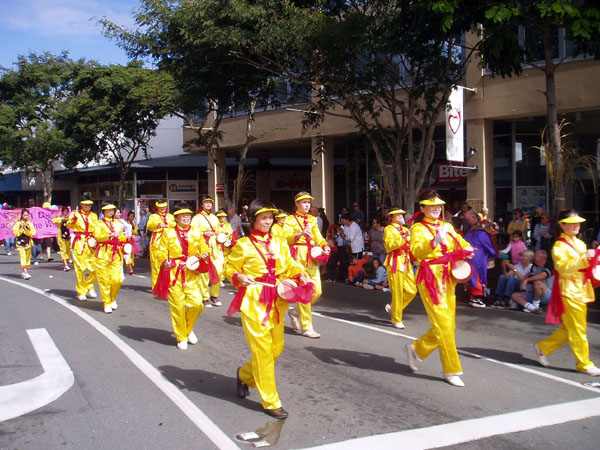 法轮大法学员的游行队伍把祥和喜庆带给了每一位观众,从他们的赞许的目光中,学员们感受到大法的美好已经越来越深入澳洲人民的心中。