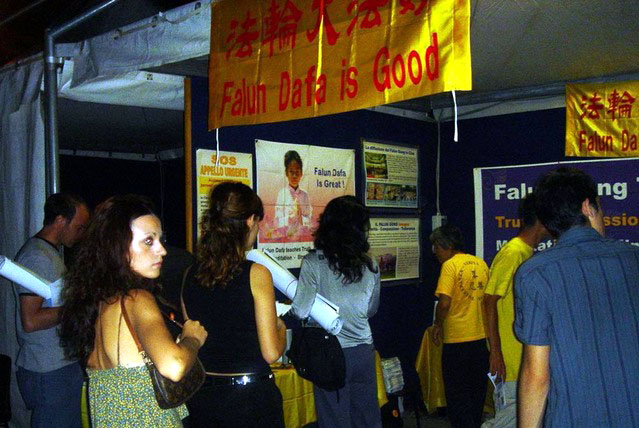 意大利法轮功学员应邀参加了该项活动,并获得一个展位。活动每天晚上8点开始,到夜里1点钟结束。