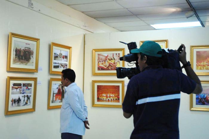 ![]() 文化人陶菲克-伊斯迈致祝贺辞。 | ![]() 历史古董局局长哈力-温多罗致开幕辞。 | ![]() “真善忍”图片展览中的反酷刑演示。 |