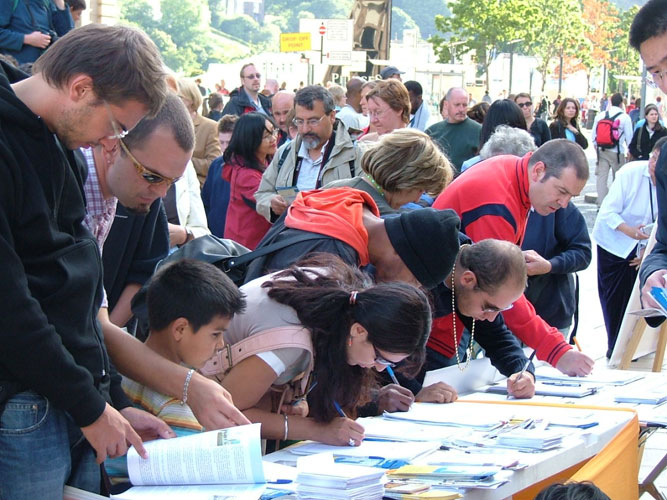 与此同时,一些学员在场外发放传单,征集签名,向观众讲述真象。许多观众都是含着泪走去签名,有时签名桌旁还排上了队。两个小时的演出,征集了将近一千个签名。