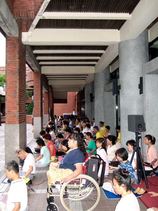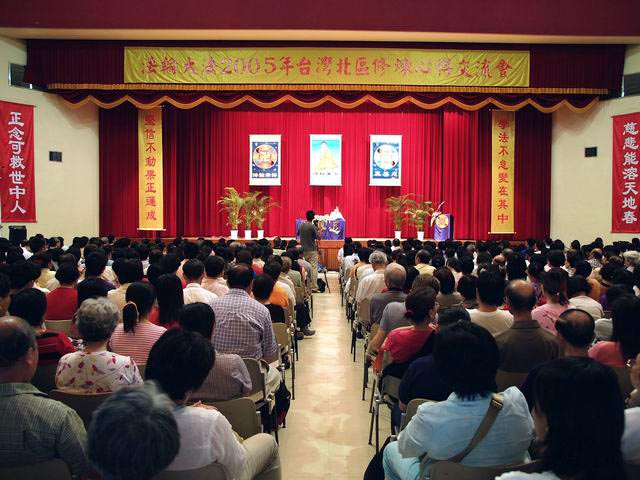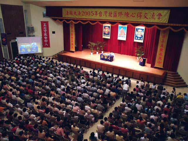 8月12日的周末下班时刻,虽是轻度台风珊瑚来袭,台北士林的剑潭海外青年活动中心却拥入来自桃园、新竹、中坜、台北各县市及外岛澎湖的法轮功学员,参加为期两天半的“法轮大法2005年台湾北区修炼心得交流会”。以集体炼功、集体学法及法会的形式,针对李洪志老师要求学员的三件事──修炼好自己、讲清真象及发正念清除邪恶,广泛交流。