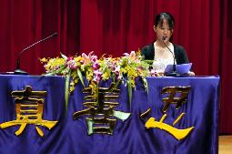 一位年轻女学员谈到自己如何克服安逸心与懒惰的魔性中走向修炼。最后她说,我并没有像很多同修有轰轰烈烈的证实法的过程,也没有很多可歌可泣的修炼故事,以及扎实的学法基础,但我有一颗想要帮助一些走不出来的同修的心,师父一直在给我机会让我赶上来,我希望今后能更加学好法,能做的更好,紧跟正法进程。
