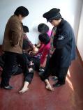为了早日送江静劳教(劳教书已经下来)城阳镇政府就叫来城阳皮肤科医生(女,40多岁)与政府几名女工作人员不顾江静的极力反对,强行脱光江静的内外裤,给她浑身涂抹不明药物“治疗疥疮”。女医生并假惺惺的呵斥江静说病好以后,就送江静回家。之后,女医生多次强行给江静身体涂满不明药物。