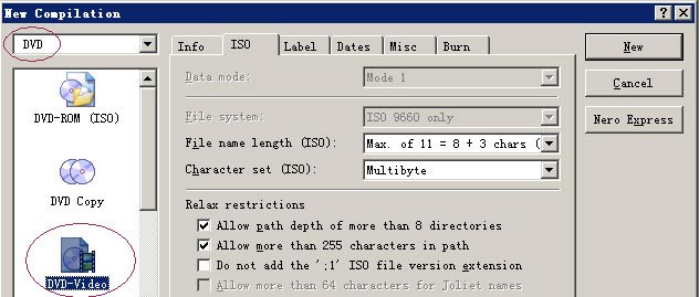 答:DVD视频主要由Video_ts和audio_ts组成,你复制了母碟的这二个目录到硬盘后,在nero中选择“新建”-“DVD”-“DVD-Video”,然后将这二个目录拖入光盘根目录即可。(见图)