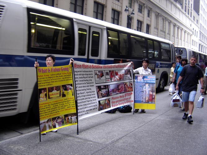 一位能说英文的曾姓小学教师表示:在曼哈顿讲真象十分迫切,这个暑假是他第三次来曼哈顿,因为这里是世界金融中心,有许多大公司在中国有投资,这里的公司都有中国人在那里工作,他们被中共操控的媒体所蒙蔽,对法轮大法有不好的认识,影响到在公司里的其他同事。他们投资到大陆的钱,被用来支持中共迫害大陆善良的老百姓,尤其是中共对修“真、善、忍”的法轮功学员的迫害手段更为残暴。