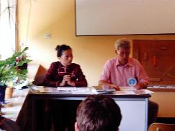 国际人权协会的瑞姆先生在开场白中,综述了人权在中国至今仍被严重践踏的事实。而后卡姆市法轮功学员敏滕-施为格(Min Teng-Schwägerl)作了简短的自我介绍,并道明来意,当即获得在座学生们的掌声欢迎和鼓励。接下来,瑞姆先生讲述了他在西藏冒着危险为西藏医院送药的亲身经历和所见所感,使在场师生认识到中共非人性的本质。