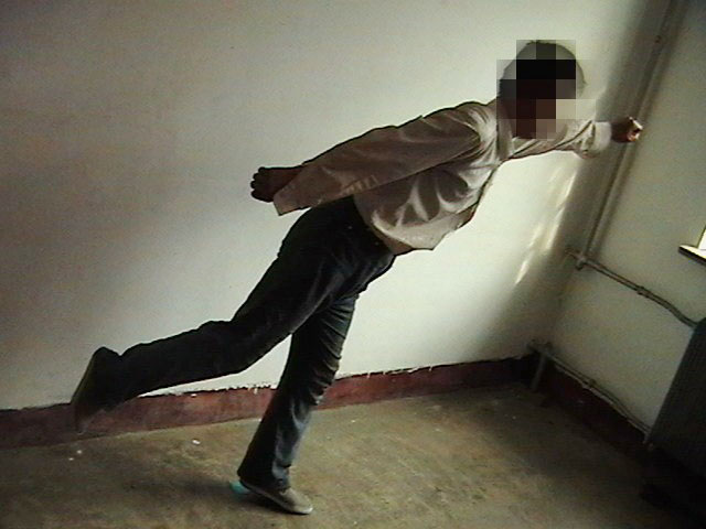 一、“踩腹部蹦高”:在2000年12月,辽宁省葫芦岛劳动教养院为了强行转化,他们暴力洗脑集中迫害,7、8个恶警用6、7根电棍同时向我身体各个部位电击,问还炼不炼。我说“炼”!他们就继续电,当电棍的电用完后,就接着充电,充电后继续电。我被恶徒一直从下午1点电到晚间12点,电棍充电的间隙,恶警围着踢打,有的恶警还站在我的腹部蹦高取乐(图一)。同时遭受酷刑折磨的五名大法弟子有陈德文(在教养院已迫害致死)赵连新、张璇、李学民、何凤华。