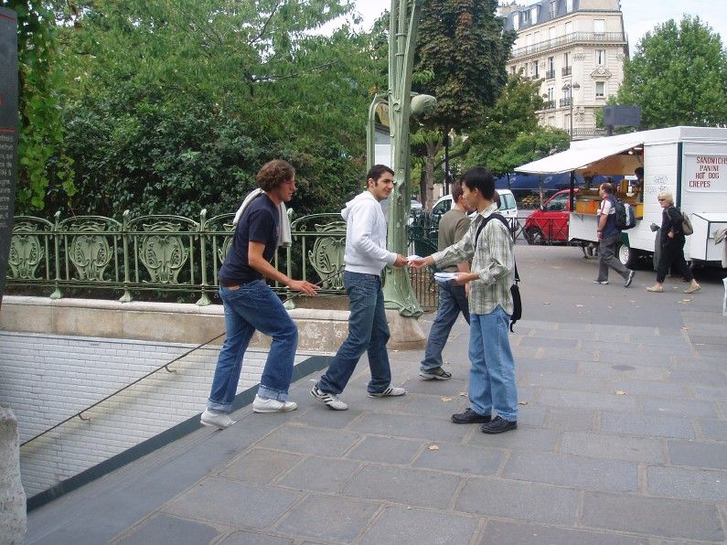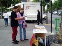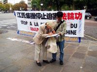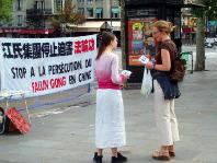 散发传单、功法演示、讲清真象、征集签名……虽然学员人数不多,但大家将这一切做得井井有条。路过此地的人们纷纷表达了他们对这场迫害的谴责与对法轮功学员们的真诚祝福。许多来自法国不同地区如:巴黎(Paris)、里昂(Lyon)、南特(Nantes)、克雷黛耶(Creteil)、昂吉(Angers)、布洛尼(Boulogne)、安东尼(Antony)等地的人们在支持反迫害的征签表上签名。还有一些来自英国、比利时、印度的外国游客,在获得了相应语种的真象资料后也欣然签名。