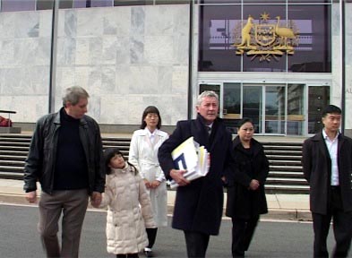 “大家应该知道,外长唐纳无疑会遵守法院的判决,如果法院发出判决通知,唐纳就可以对中国外交部说:我想保护你们,但是澳洲的法庭下了判决,不允许我继续签发这种证书。我要说这是非常可耻的,唐纳先生,你本来是可以向中国政府解释清楚,你应该有勇气停止签发这种证书,但是你迫使我们走上一条起诉你的路。大家都已经知道了,今天横幅(在中国大使馆前)已经展开,警察并没有干涉,也没有阻止他们(法轮功学员)打横幅。”