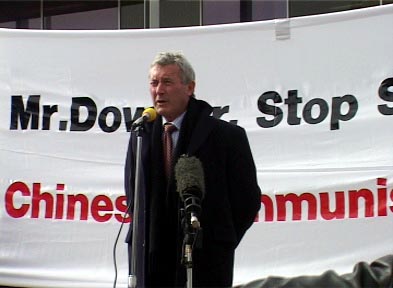 “由于我在国内的特殊身份,使我深深看到中共如何残酷迫害法轮功和其他持不同政见者。但是让我不可思议的是在一个自由民主的国家里,她的外交部长可以签署禁止法轮功学员在中共大使馆前的请愿活动,这样助纣为虐的行为让我不敢相信。”