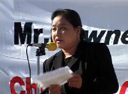 ![]() 另一位起诉人戴志珍女士也在新闻发布会上发言 | ![]() 法轮功学员Geoff发言 |