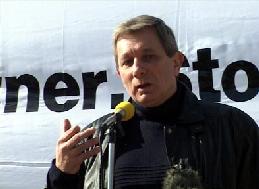 ![]() 法轮功代表律师Bernnard Clollaery在集会上发言 |