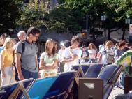一位来自巴西的老师看到反酷刑展示后郑重的说,“这太令人难过了。我要帮助你们。”她说她要把今天拍到的照片给巴西的大使馆看,她还将告诉她的学生发生在中国的迫害。她说“媒体应该报导这事,让所有的人都知道。”她说她正好有朋友在媒体工作。