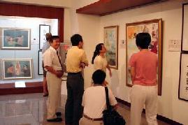 ![]() 观众赏画专注认真 | ![]() 观众看得兴致盎然 |
