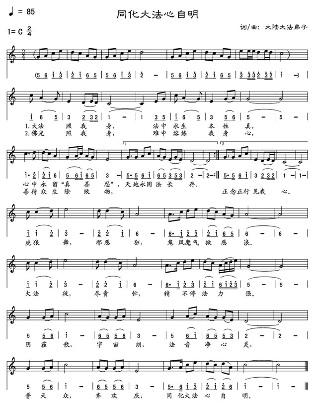 歌谱:同化大法心自明