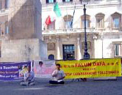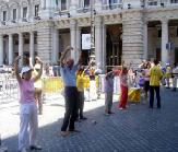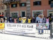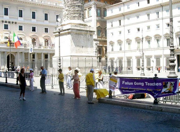 这是学员第二次在这个广场上被问到同样的问题。这位议员声音里流露出的真诚令人感动。学员回答说:“谢谢您,议员女士。第一件事您已经做了,您的支持非常宝贵。第二件事就比较具体了。我们想到中共驻罗马大使馆前和平抗议对法轮功的迫害,但是由于罗马警察局一直没有给我们一个较好的位置,我们可以自由的在议会广场、总理府前举行和平活动,却不能到迫害无辜中国民众的中共代表的驻地前抗议。我们希望能改变这个状态。”
