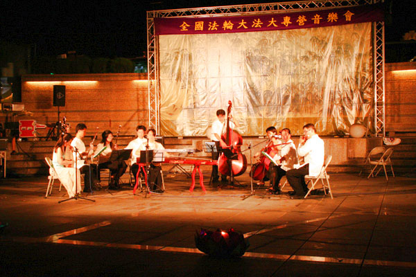 星期五晚上在新竹东门圆环举办夜间露天音乐晚会,乐音动人,令人印象深刻。当问到活动给大家最大的收获时,学子们表示“‘真善忍’如果都做到,会使自己天天happy”;“感受到大法的美好和威力”;“做好人的标准真的很高,要努力的还太多”;“发现自己以前自我意识真的太强了(需要检讨改进)”;“看到许多精进的同修,向内找,勇敢面对自己”等。