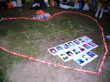 用蜡烛和鲜花组成的真善忍字样及心型图案 |   在日本开始“起诉江泽民” |